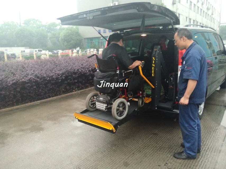 商務(wù)車載型無障礙升降平臺(tái)www.bibike.com.cn采用鋼結(jié)構(gòu)平行四邊形結(jié)構(gòu),液壓驅(qū)動(dòng),安裝于汽車尾部提供殘疾人輪椅車上下汽車的專用提升平臺(tái),平臺(tái)前后各裝有安全翻板以防輪椅車在提升過程中滑落,平臺(tái)設(shè)有控制面板便于使用者方便操作,在汽車內(nèi)部裝有手動(dòng)控制手柄,在升降平臺(tái)斷電或電控故障時(shí)通過手柄人工機(jī)械操作平臺(tái)升降,使用后平臺(tái)可旋轉(zhuǎn)放置,不占空間。